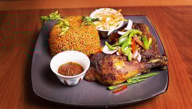 Savor the bold flavours of our mouth-watering Jolly Rice & Chicken. Succulent Chicken cooked in a rich, spicy tomato sauce, served atop a bed of perfectly seasoned jolly rice, creates a wonderful experience that will leave you craving for more.